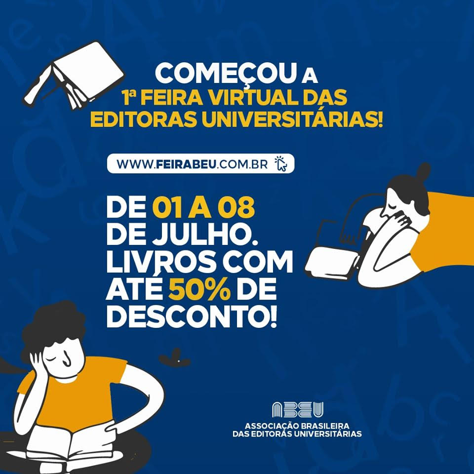 A Editora UFSM participa desde quarta (1º) até o dia 8 de julho da 1ª Feira Virtual das Editoras Universitárias, realizada pela Associação Brasileira de Editoras Universitárias (Abeu). Várias editoras universitárias participam da feira, com suas publicações disponíveis para compra online no site da Abeu, oferecendo descontos especiais no catálogo.