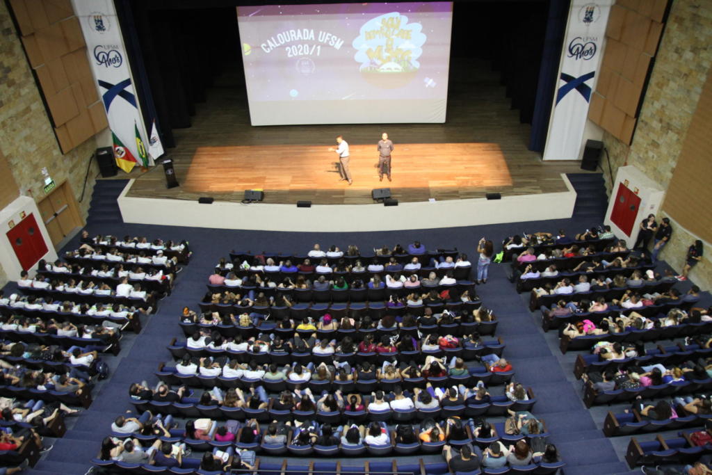 Aconteceu na manhã desta segunda-feira (9), no Centro de Convenções, no campus sede, a abertura da Calourada UFSM 2020/1. Marcando a volta às aulas no primeiro semestre de 2020, a Calourada tem como objetivo promover a acolhida e socialização entre novos estudantes e veteranos, apresentar a Universidade e tirar dúvidas comuns para quem está ingressando.