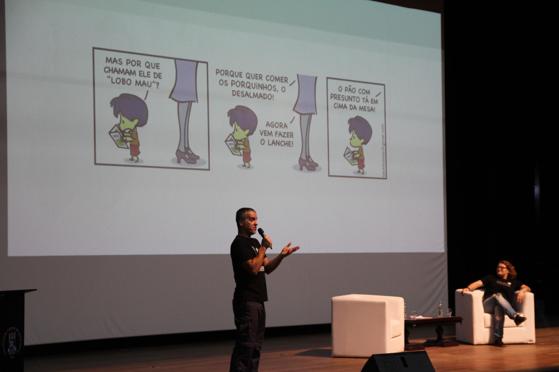 Na sequência, Alexandre Beck, ilustrador e cartunista brasileiro, autor da tirinha "Armandinho", foi chamado ao palco para conversar com os calouros. Natural de Florianópolis, ele morou em Santa Maria por quatro anos, quando a esposa, Janine, foi professora na Universidade. “Eu fui convidado para dar as boas-vindas a vocês, ingressos da Universidade Federal de Santa Maria. Eu fiquei muitíssimo contente, é uma honra muito grande”, comentou.