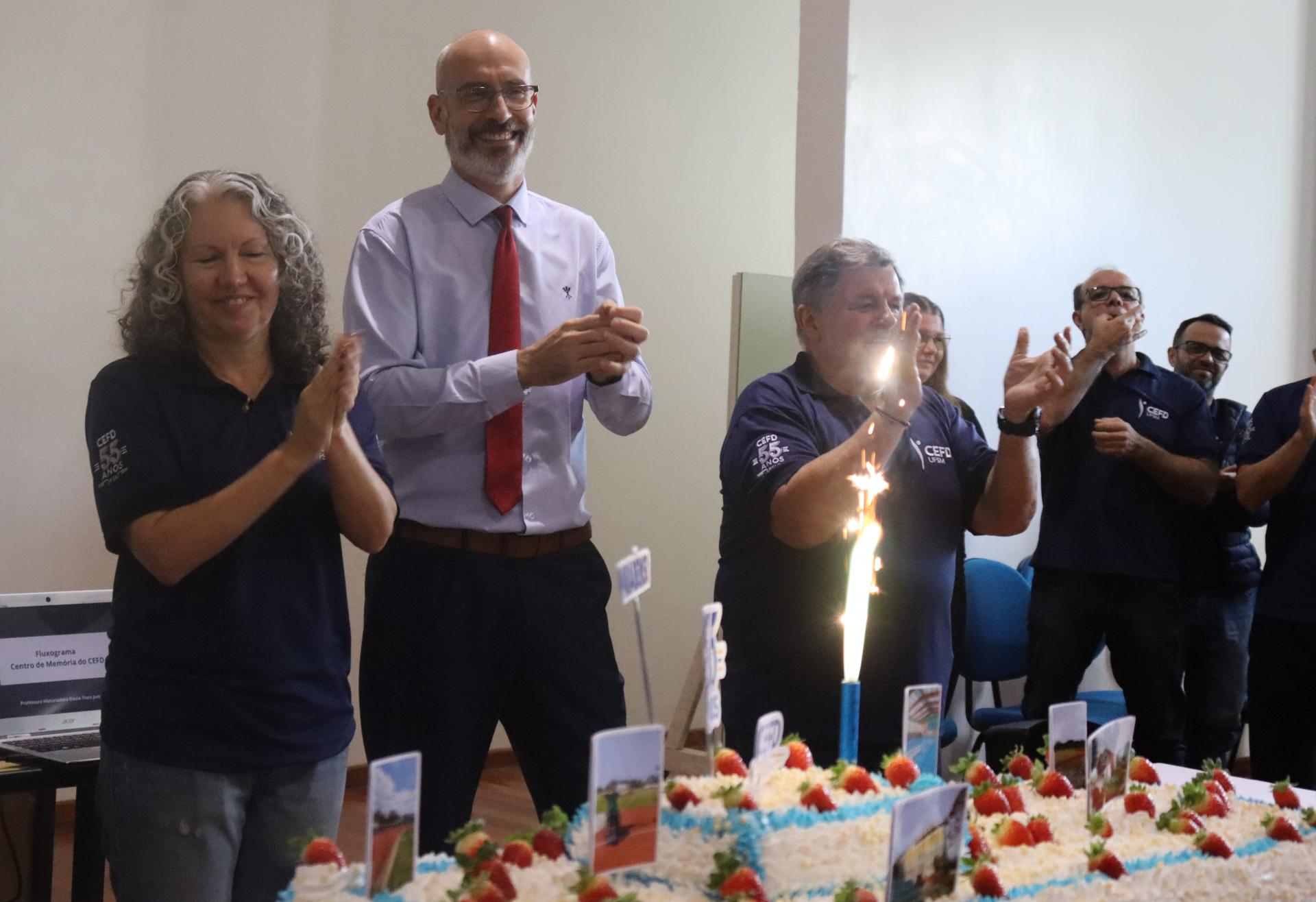 [caption id="attachment_69138" align="alignright" width="556"] Na festa de aniversário, os convidados cantaram “Parabéns a Você” para o CEFD, com direito a bolo e vela[/caption]