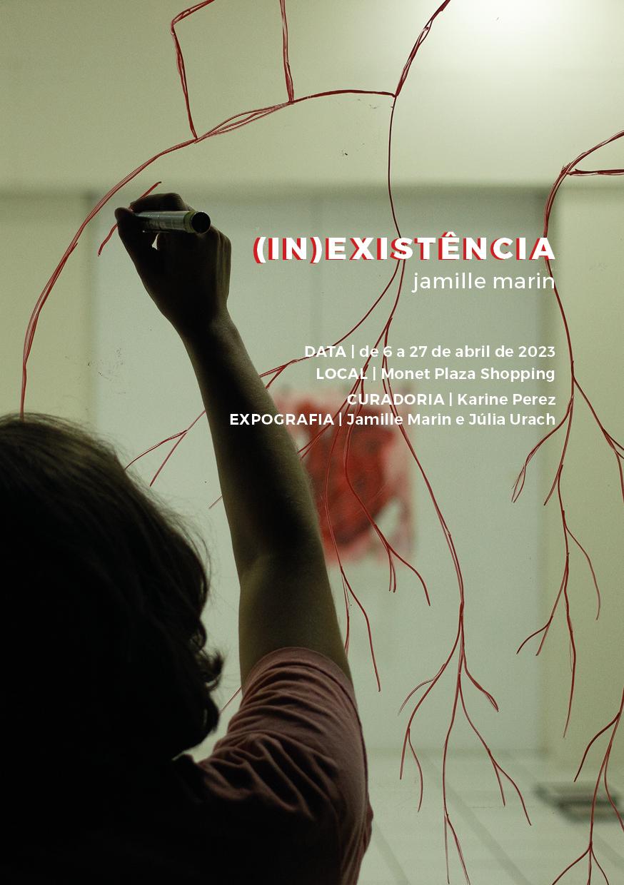 A estudante do curso de Artes Visuais da UFSM Jamile Marin realiza a exposição individual "(In) Existência" até quinta-feira (27) na Sala Monet Plaza Arte, do Monet Plaza Shopping. Estão expostas pinturas, colagens, fotografias, uma instalação, uma intervenção em vidro (desenho) e uma intervenção no chão (poesia).