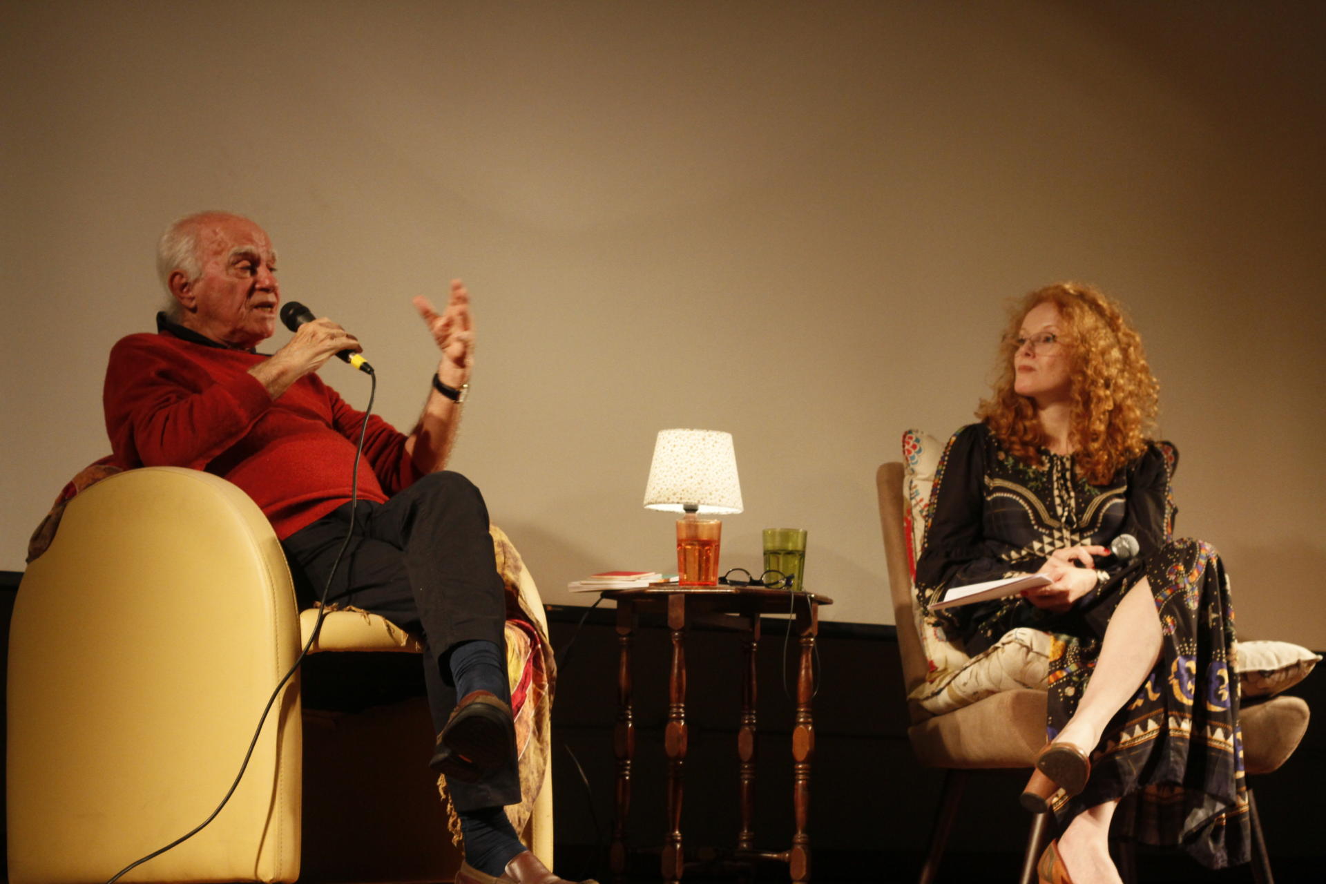 [caption id="attachment_49464" align="alignleft" width="500"]Foto colorida horizontal mostra em plano fechado, sentados em poltronas, o autor convidado falando ao microfone e ao lado uma mulher ruiva olhando para ele Ignácio de Loyola Brandão foi o convidado para o painel de abertura do evento[/caption]