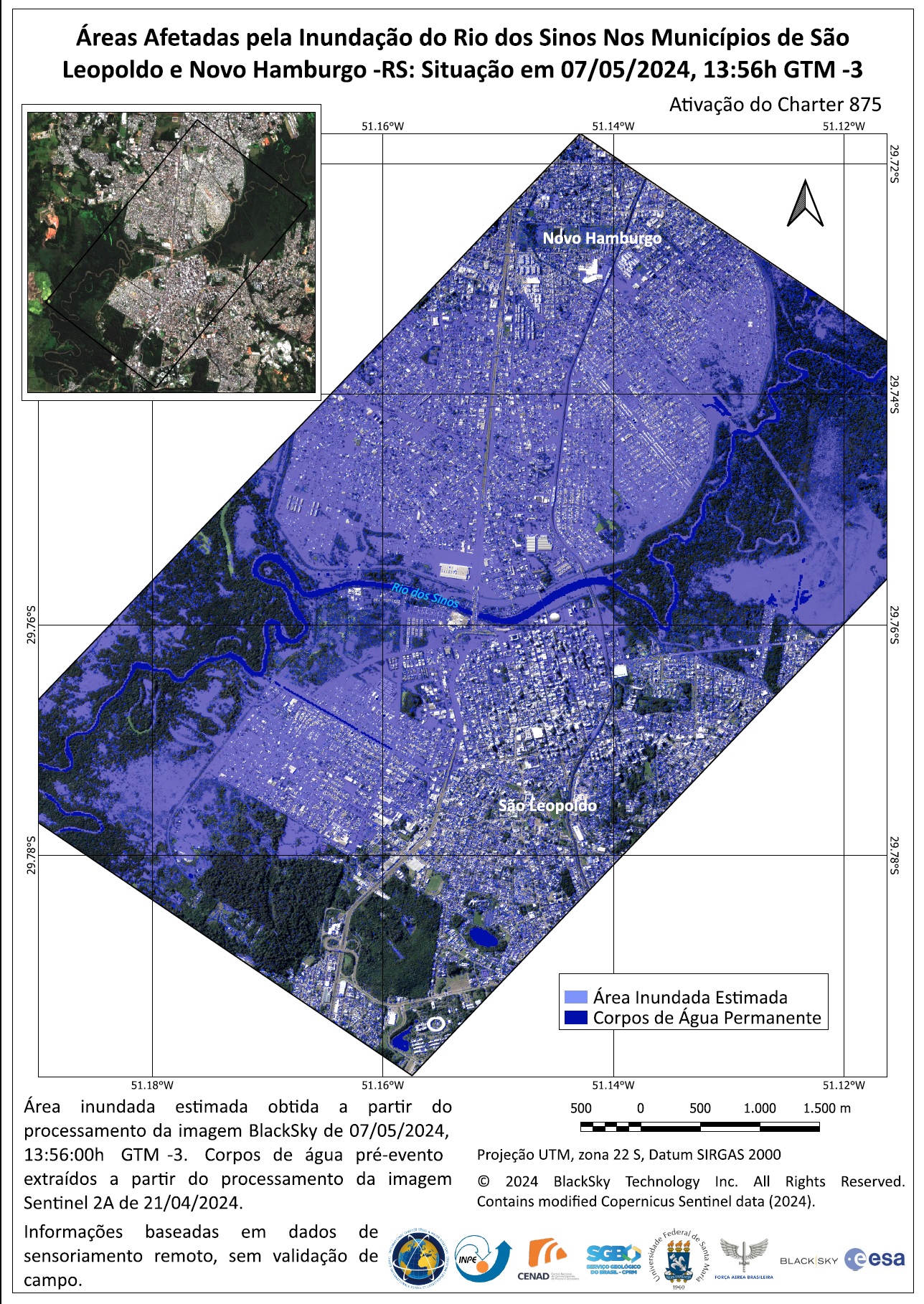 Quando acontecem inundações, como as que atualmente assolam o Rio Grande do Sul, os colaboradores da Carta podem processar as imagens para ressaltar em cores diferentes, por exemplo, o leito normal de um rio e a sua área de inundação. Existe ainda a peculiaridade de que os satélites ópticos, no caso de imagens aéreas de inundações, são frequentemente obstruídos por nuvens. Quando isso acontece, a alternativa é a criação de imagens por meio de radar.