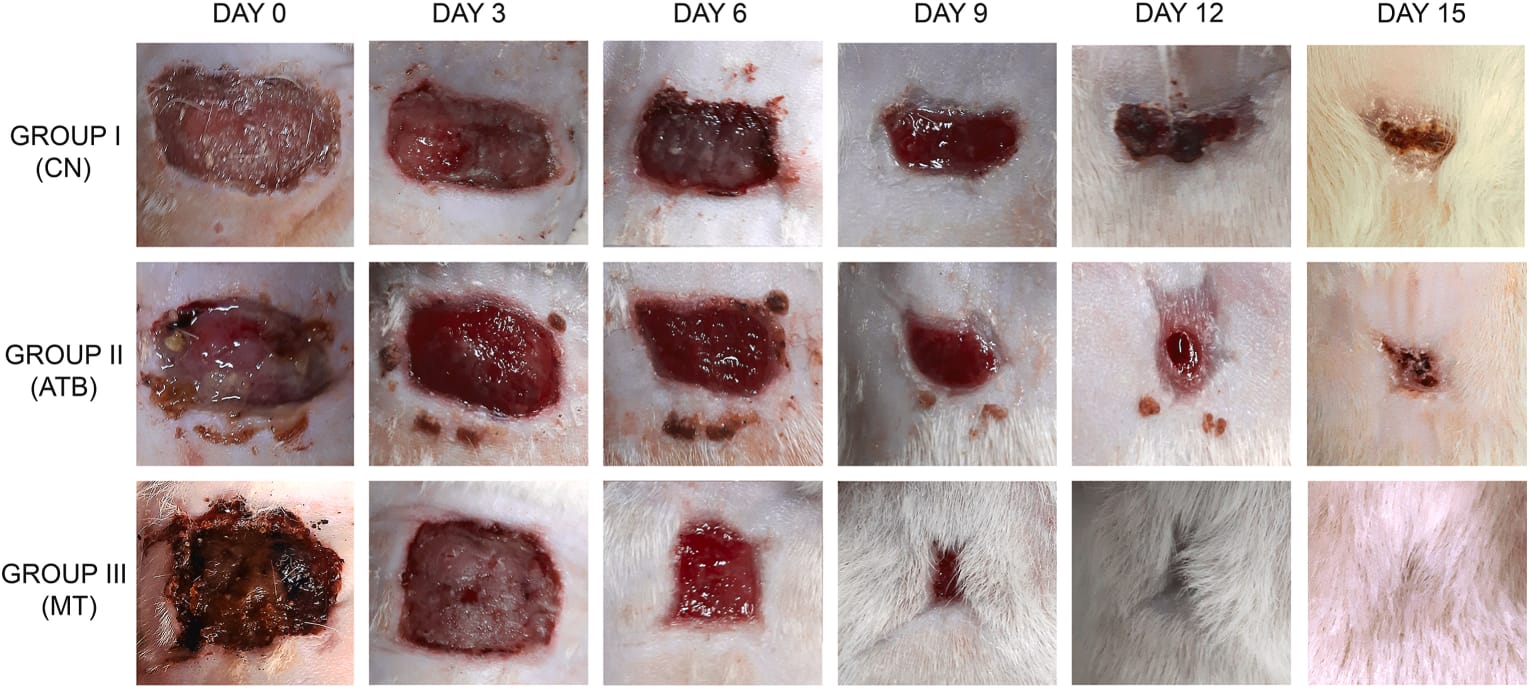 Logo, partiu-se para a parte in vivo (com organismos vivos). Nela, avaliou-se a colocação direta de larvas de Lucilia cuprina em feridas de ratos induzidas e infectadas por MRSA, a fim de comparar com as técnicas rotineiramente utilizadas, como o desbridamento mecânico por solução salina e gaze e a aplicação tópica de pomada antibacteriana.