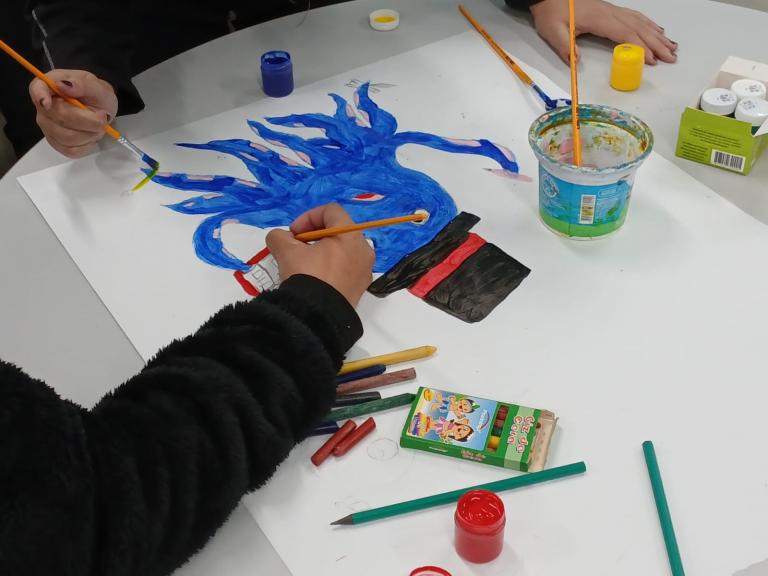 As crianças escolheram o tema “desenho animado” e fizeram ilustrações em grupos sobre isso. O grupo irá criar uma arte baseada nos elementos dos desenhos dos estudantes e aprovar junto à escola para a pintura do muro, atividade que está prevista entre os meses de agosto e setembro. Após isso, será feita a inauguração da fachada junto às crianças.