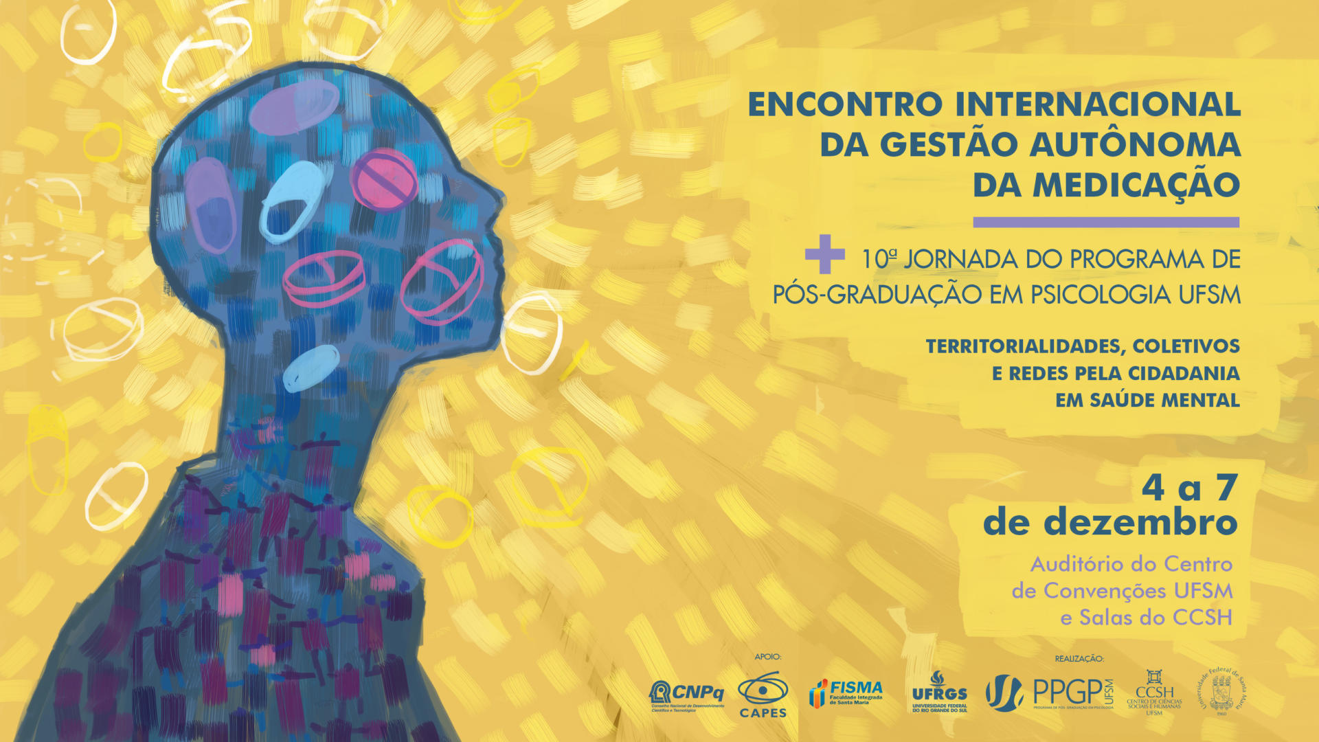 O Encontro Internacional da Gestão Autônoma da Medicação e a 10ª Jornada do Programa de Pós-Graduação em Psicologia da UFSM serão realizados de 4 a 7 de dezembro, no auditório do Centro de Convenções e em espaços do CCSH, no campus de Santa Maria.