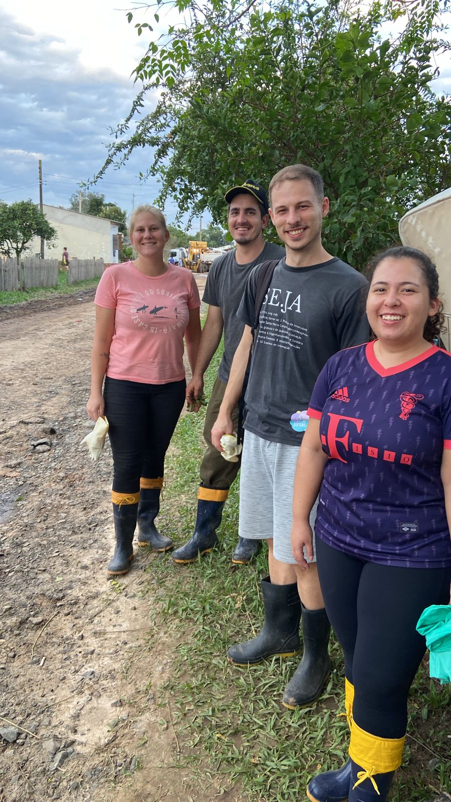 A primeira ação foi realizada em 15 de setembro do ano passado, quando estudantes e servidores da Universidade deslocaram-se até o município de Muçum para realizar triagem de roupas, limpeza de casas, preparação de alimentos e demais atividades. Em outubro, alguns voluntários retornaram à região para levar caixas de livros arrecadados e triados.