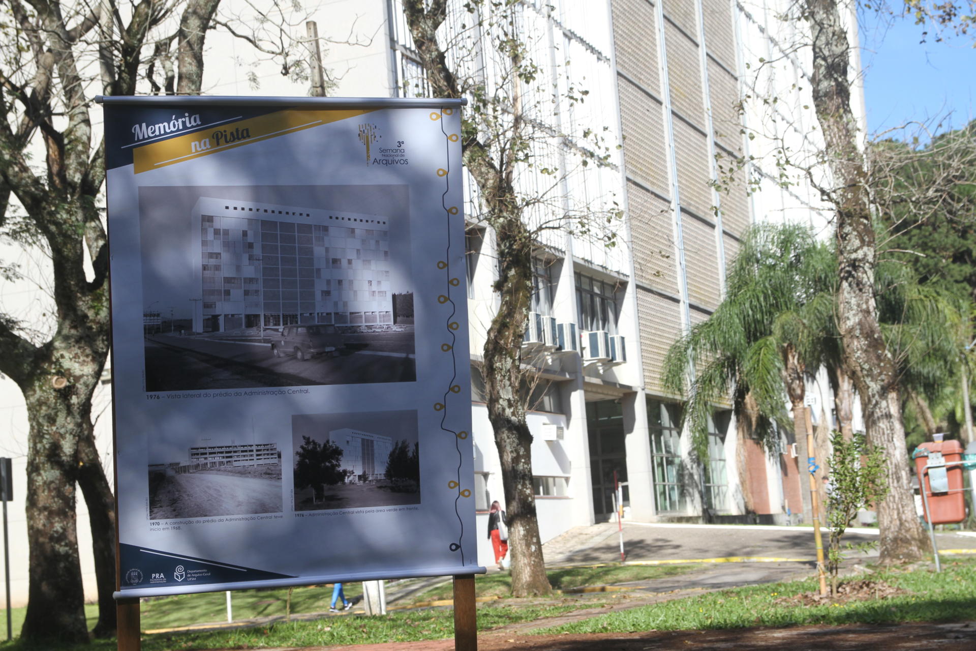 [caption id="attachment_48027" align="alignleft" width="400"]Foto colorida horizontal mostra painel da mostra próximo á reitoria Exposição foi organizada pelo DAG[/caption]