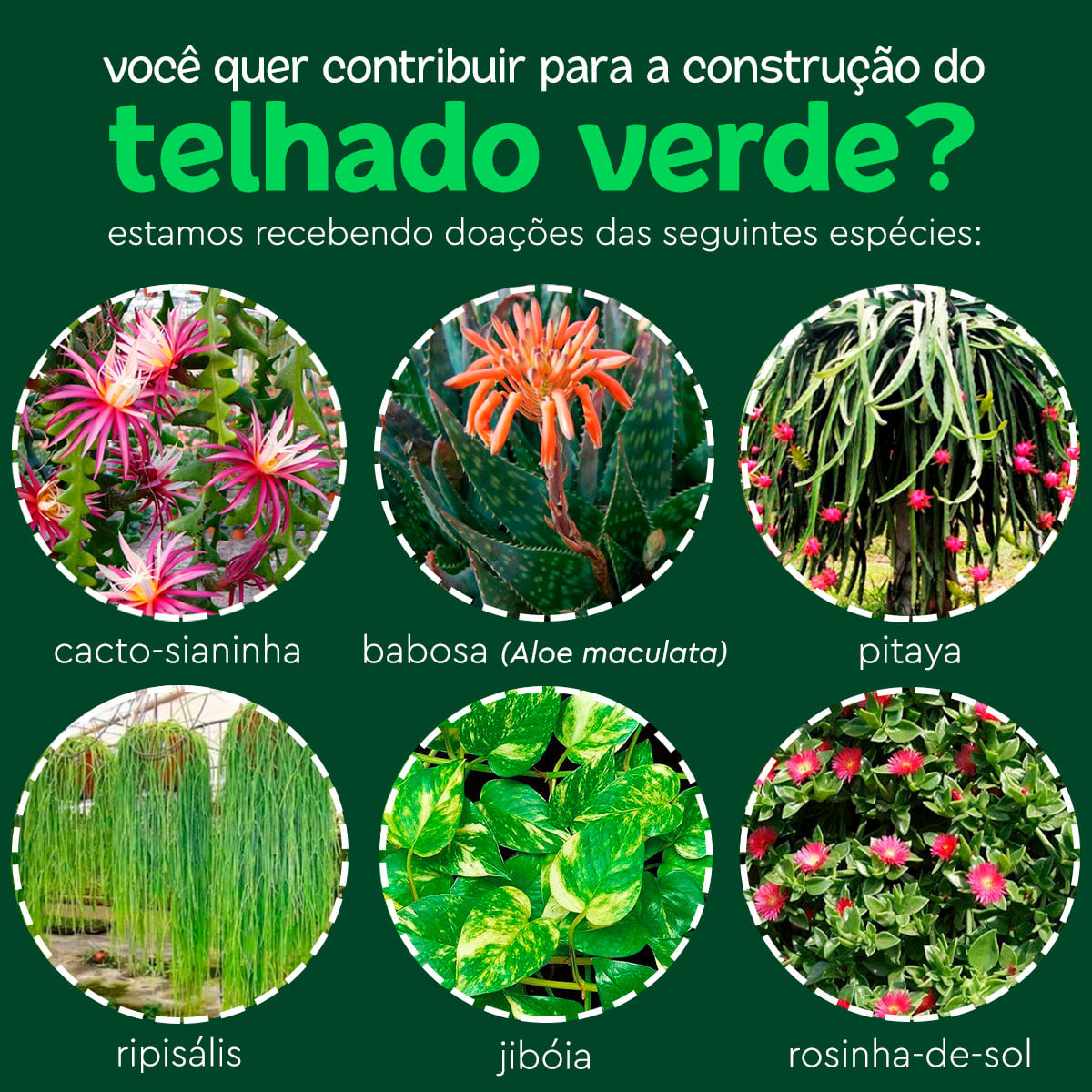 Desde 2019, o Programa de Educação Socioambiental da UFSM atua na elaboração de um projeto paisagístico para o telhado verde para o prédio 13F, do Jardim Botânico (JBSM). O projeto, que tem previsão para finalização em dezembro deste ano, está arrecadando doações de plantas de diferentes espécies. O público pode contribuir com pitayas, babosa pintadinha, bromélias diversas, lavanda, cacto sianinha, rosinha de sol e bálsamo.