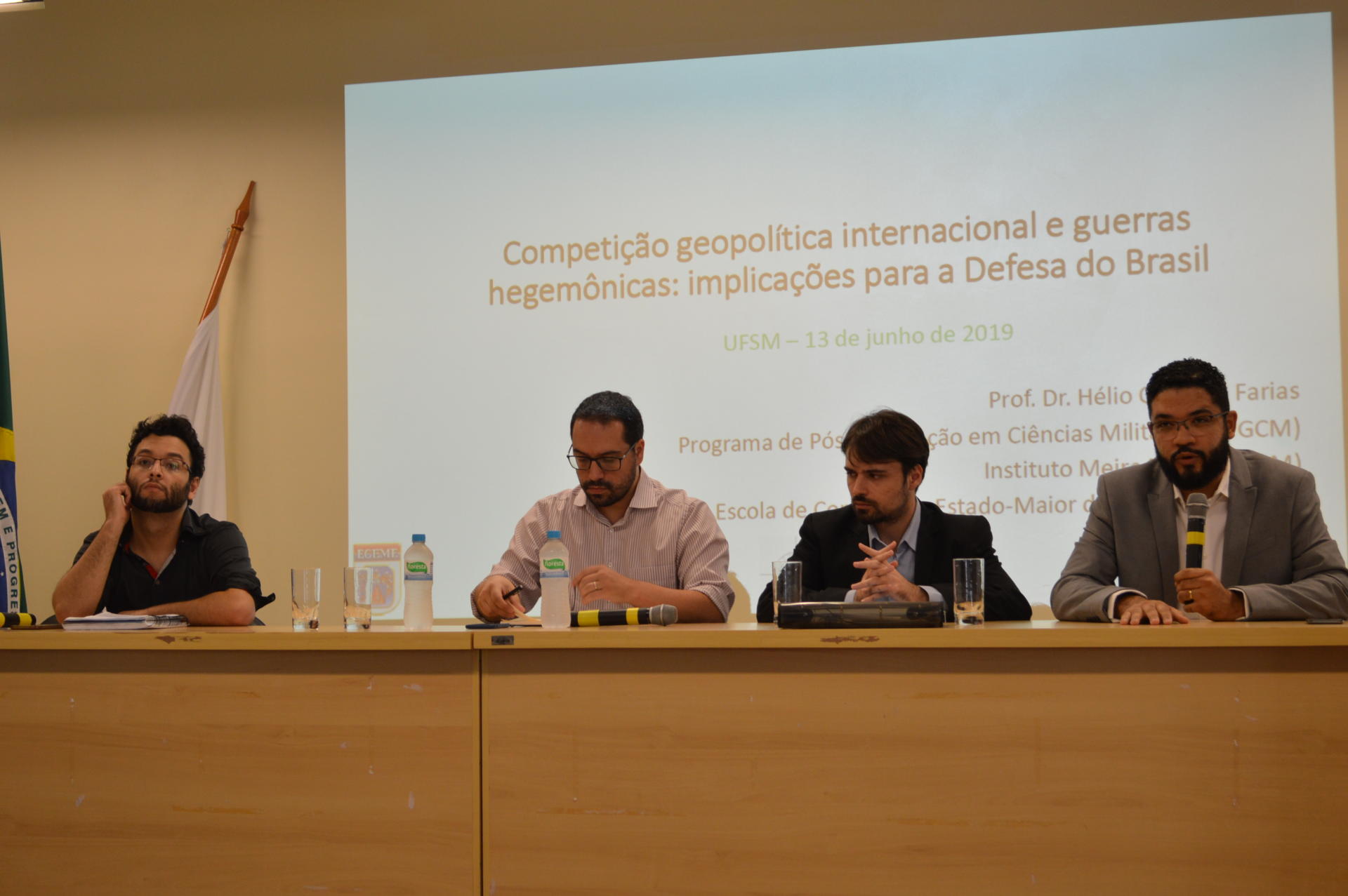 O curso de Relações Internacionais da UFSM promoveu na última quinta-feira (13) a palestra “Guerras e transições sistêmicas”, que contou com três palestrantes: Bruno Hendler, professor da UFSM , Hélio Farias e Ricardo Zortéa, ambos da Escola de Comando e Estado-Maior do Exército (Eceme).
