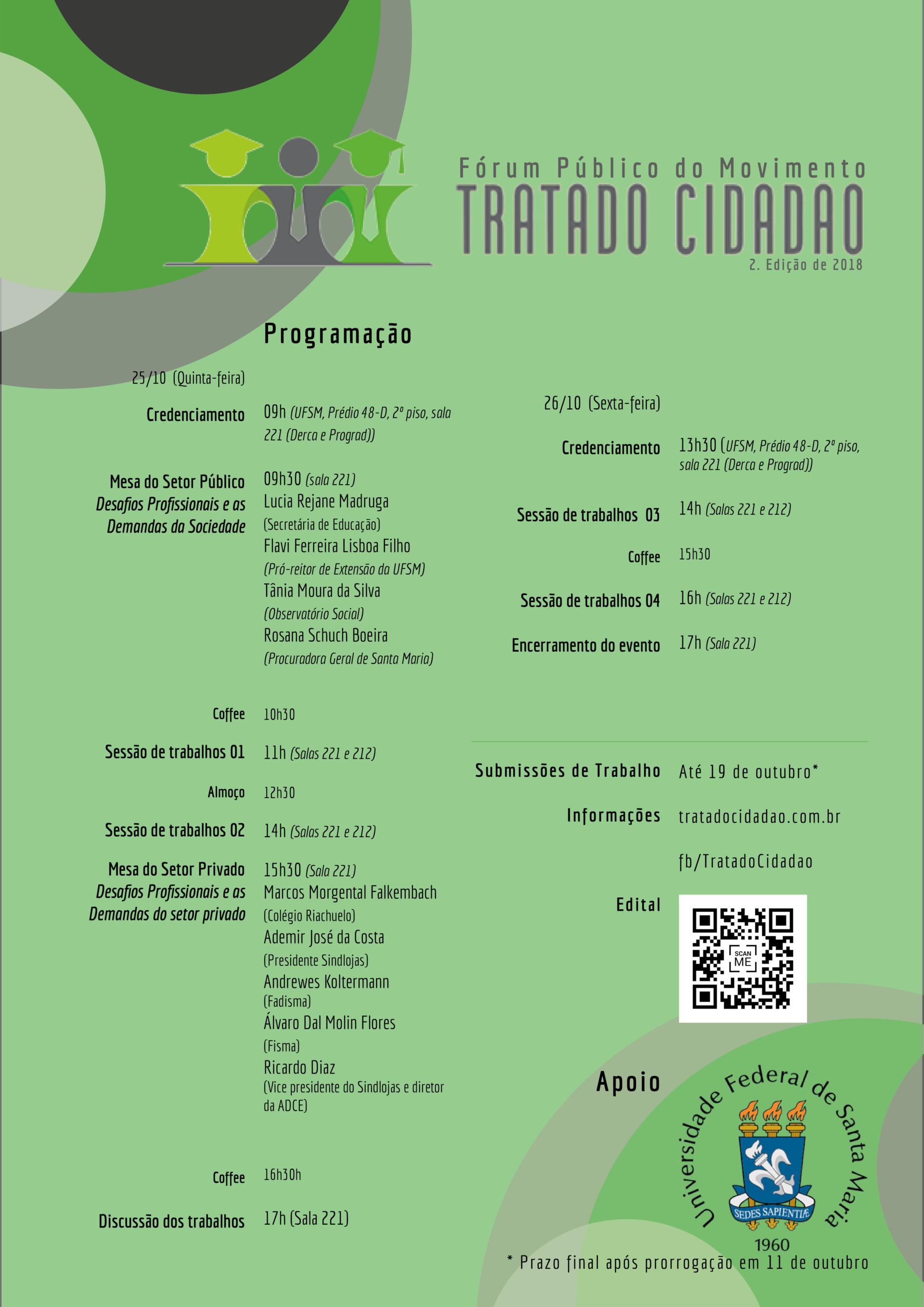 A 2ª edição de 2018 do Fórum Público do Movimento Tratado Cidadão será realizada nos dias 25 e 26 de outubro, colocando em debate os diferentes desafios enfrentados por recém-formados, tanto no setor público quanto nas organizações privadas.