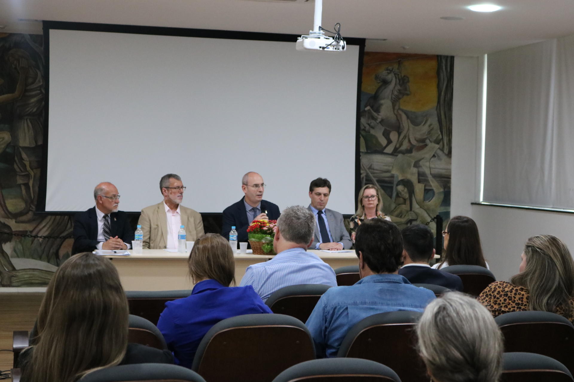 A abertura contou com a fala do docente do PPGH e coordenador da Cátedra, André Luís Ramos Soares, e de outros convidados presentes, o vice-reitor, Luciano Schuch, o secretário geral do Conselho Internacional de Filosofia e Ciências Humanas do Instituto Politécnico de Tomar, Portugal, Luiz Oosterbeek, o secretário de Assuntos Internacionais da UFSM, Érico Moraes Flores, e a coordenadora do Comitê de História, Regiões e Fronteiras da AUGM, professora Maria Medianeira Padoin.
