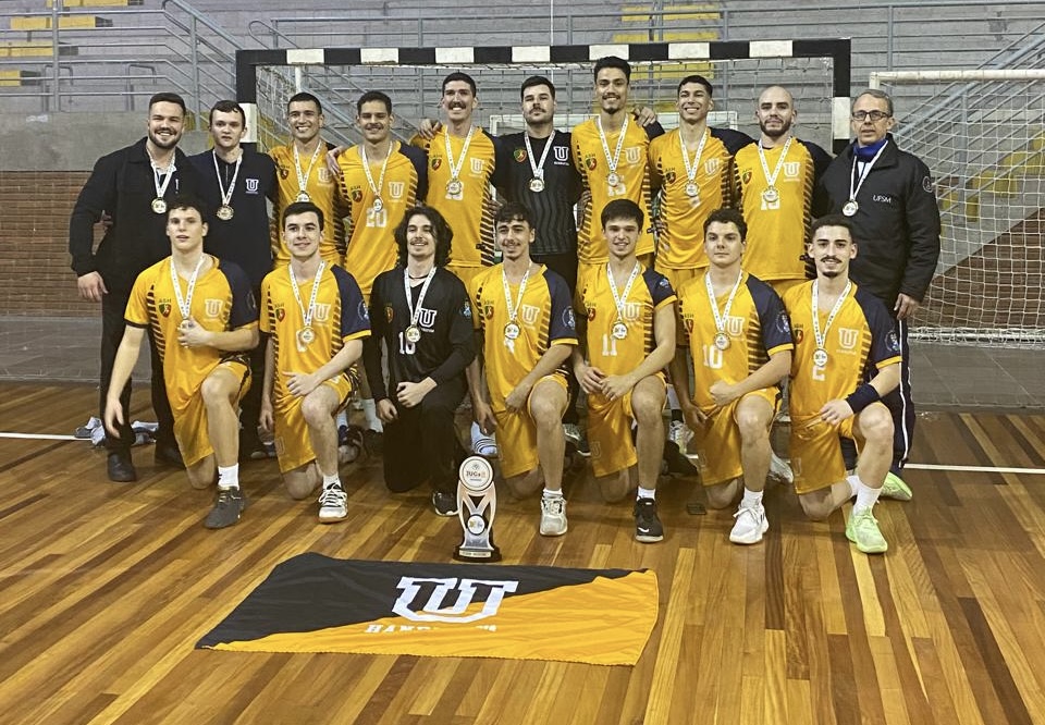 O esquadrão masculino de handebol da UFSM foi outro time que venceu o JUGs de 2024 e quebrou um jejum de mais de uma década - eram 15 anos sem um título do campeonato. E, no JUBs, foi a única modalidade coletiva a alcançar o pódio em 2024. Avançou à semifinal e conquistou a medalha de bronze.