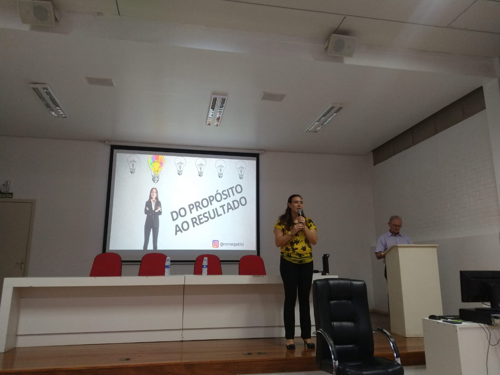 O ato foi conduzido pela diretora do Colégio, Profa. Marta Von Ende, pelo vice-diretor, Prof. Moacir Bolzan e pelo Coordenador Substituto do Curso Técnico em Comércio, Prof. Gilmar Wakulicz. Durante o evento, o professor Ronie Gabbi, consultor de negócios, ministrou a palestra “Do propósito ao resultado”, que busca levar reflexões sobre trajetórias e escolhas de vida. Na parte final de sua fala, sobre como os estudantes podem transformar seus objetivos em resultados. Ao final, o palestrante realizou um sorteio de alguns de seus livros.