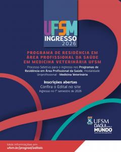 A Universidade Federal de Santa Maria está com inscrições abertas, até o dia 31 de outubro de 2025, para o Processo Seletivo de ingresso nos Programas de Residência em Área Profissional da Saúde, modalidade Uniprofissional em Medicina Veterinária.