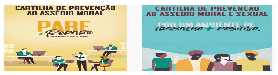 Cartilha de Prevenção de Assédio Moral e Sexual TST - Todas as organizações devem primar por um ambiente de trabalho digno, seguro, sadio e sustentável, buscando coibir toda e qualquer prática que possa colocar em risco o bem-estar físico, mental e social de seus colaboradores. Clique nas imagens abaixo para acessar na íntegra.