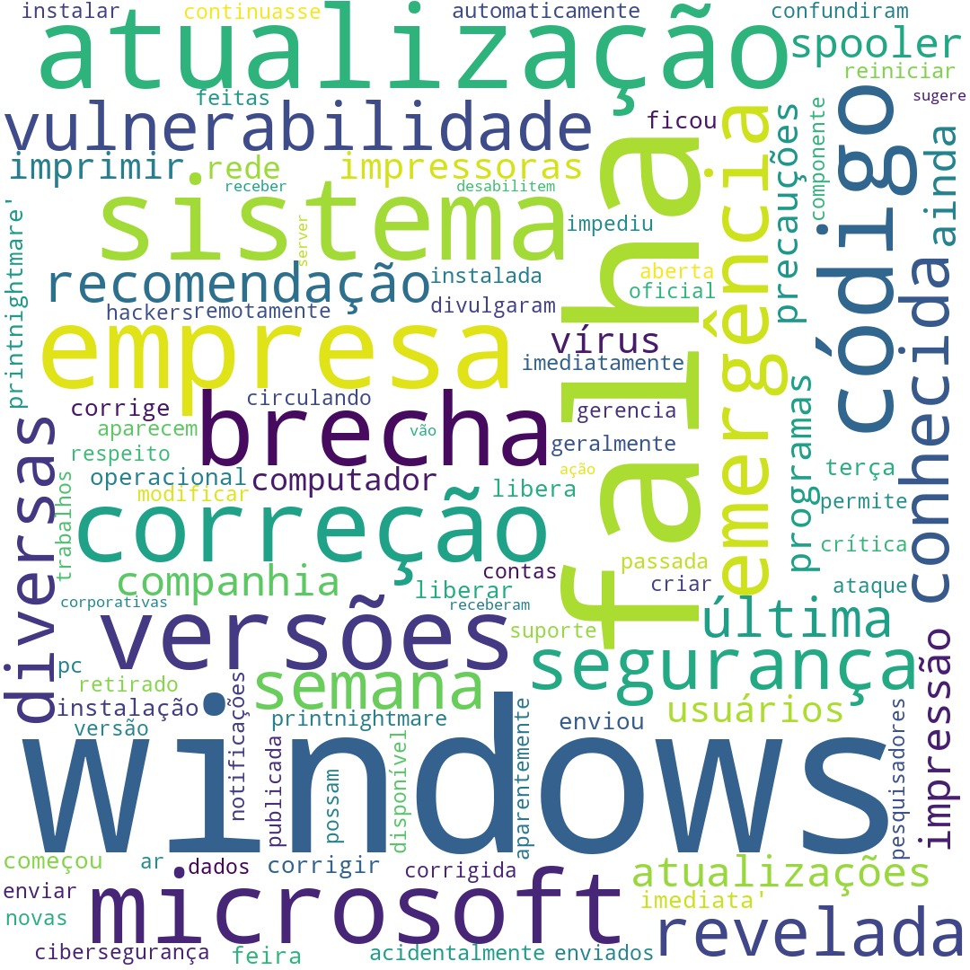Certo, agora que você já tem noção do que vamos fazer e está com seu ambiente organizado, para iniciar, precisamos do texto a ser minerado. Neste exemplo utilizarei a reportagem que pode ser acessada através do link (http://g1.globo.com/economia/tecnologia/noticia/2021/07/07/microsoft-libera-atualizacao-de-emergencia-no-windows-para-corrigir-falha-de-seguranca.ghtml). Porém, a base de dados é de sua escolha, podendo ser um capítulo de livro, artigo ou algo de seu interesse.