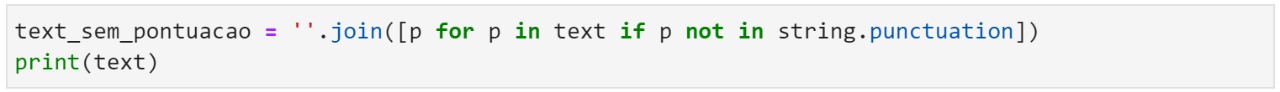Agora vamos começar a realizar a limpeza do texto, primeiro será retirada toda a pontuação desnecessária.