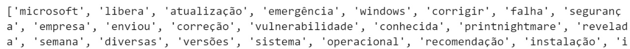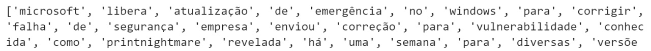 O print abaixo mostra um trecho do texto após ter sido realizada a tokenização: