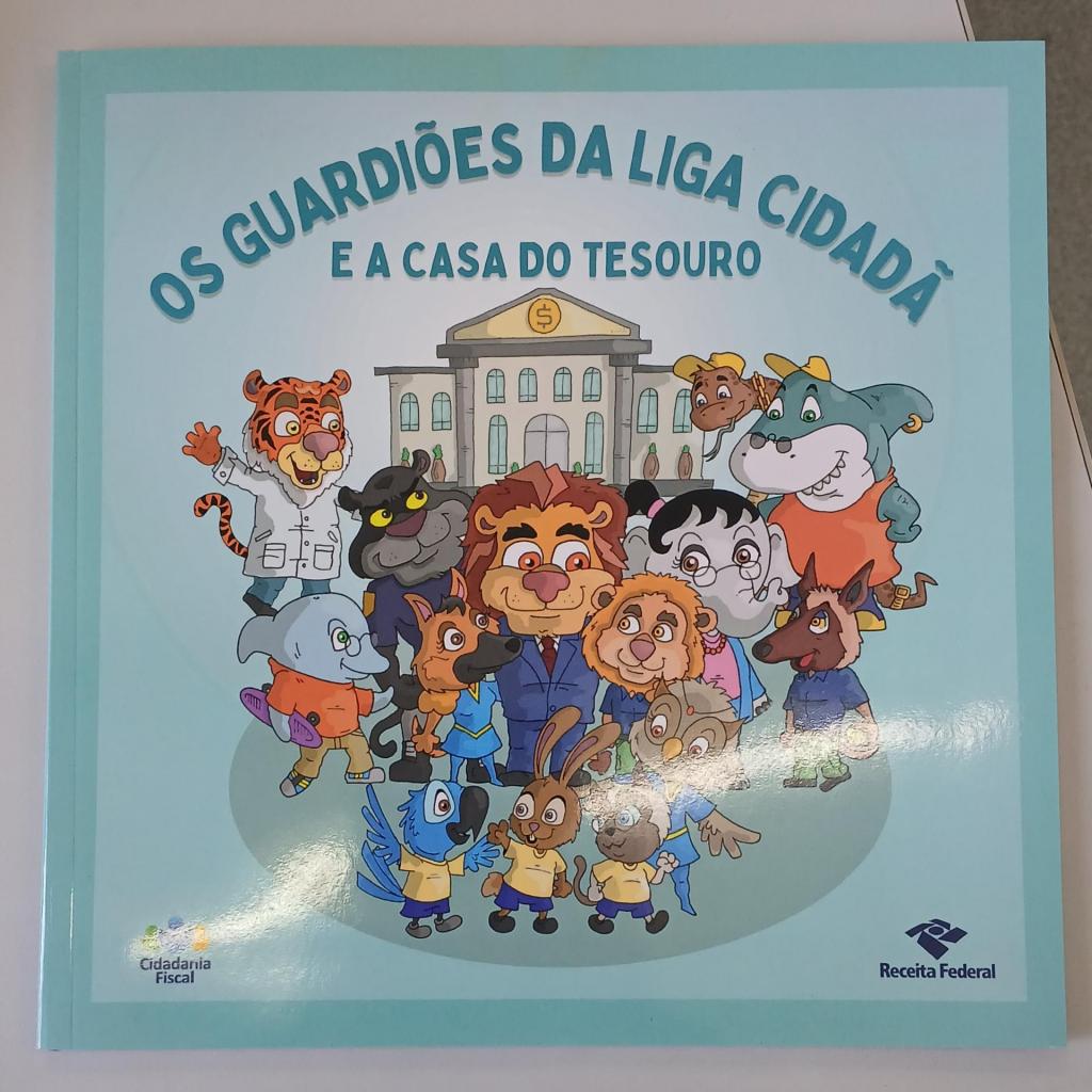 Entre as estratégias apresentadas está o uso de material paradidático desenvolvido pela Receita Federal, voltado ao apoio pedagógico dos professores da educação básica. O livro Os Guardiões da Liga Cidadã e a Casa do Tesouro utiliza uma narrativa lúdica, com personagens e situações do cotidiano, para abordar temas relacionados à cidadania fiscal. Além da história, o material propõe atividades e exemplos práticos que auxiliam os docentes a trabalhar os conteúdos em sala de aula de forma acessível, participativa e integrada ao currículo, especialmente com turmas da educação infantil e dos anos iniciais do ensino fundamental.