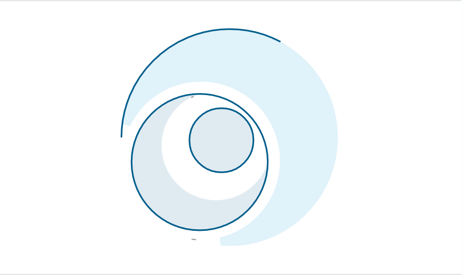 A construção geométrica do símbolo é feita a partir da intersecção de 5 circunferências e recortes de cantos. A finalização de cor com luzes e sombra é gerada a partir do deslocamento e redimensionamento destas mesmas circunferências.