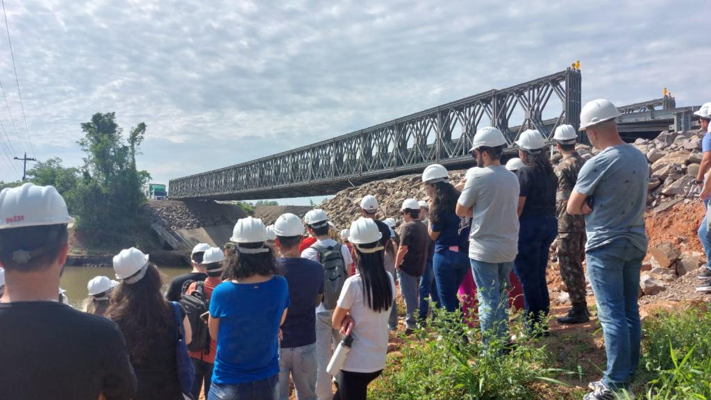De acordo com o professor André Lübeck, que acompanhou a visita, o convite partiu do Coronel Luis Venturini, que atua como engenheiro civil do escritório de engenharia do Exército em Santa Maria. Lübeck destacou a importância da oportunidade para os discentes: “Foi uma experiência que eu diria única para os nossos alunos. Apesar da origem da situação ter sido negativa pela destruição da infraestrutura provocada pelas enchentes, a oportunidade de aprendizado acaba sendo sem igual. Não são comuns situações que demandem soluções emergenciais como esta. Durante a visita, nossos alunos puderam observar as soluções de engenharia utilizadas para poder montar essas estruturas rapidamente, envolvendo desde conceitos básicos da mecânica das estruturas, até aspectos mais técnicos como as classes de carregamento utilizadas no projeto de pontes”.